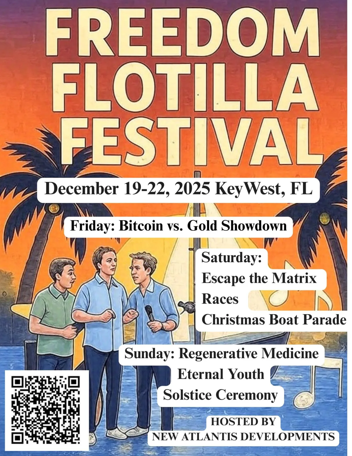 This event unforgettable The floatilla will feature electrifying concerts, wealth mastery sessions, a Bitcoin vs. gold showdown, and disaster preparedness talks, capped by a solstice ceremony on December 21.